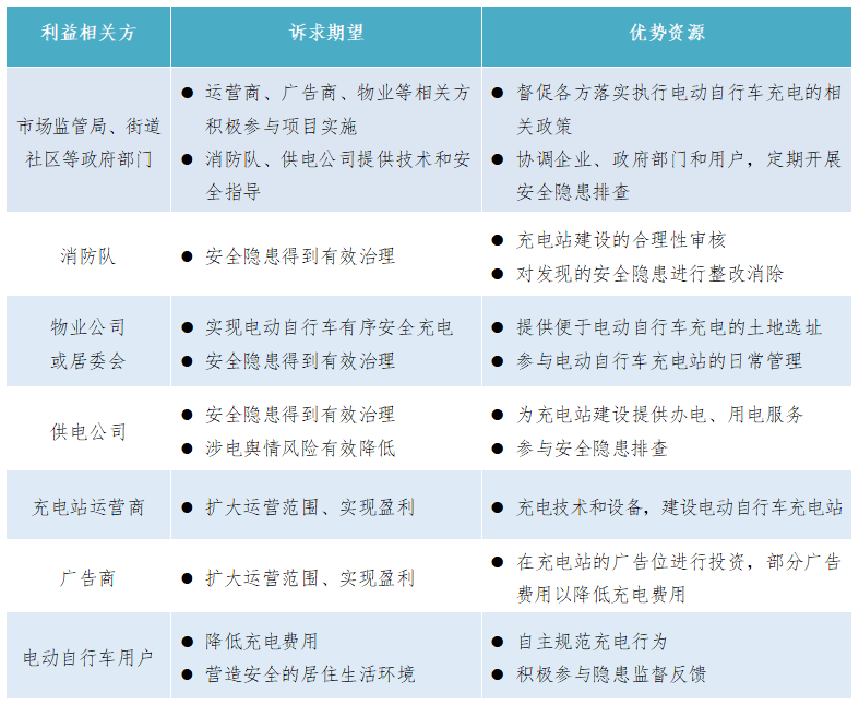 聚焦充電樁建設(shè)、運(yùn)營運(yùn)維、費(fèi)用透明等重點(diǎn)難點(diǎn),識(shí)別并引入街道社區(qū)、物業(yè)、消防隊(duì)、充電站運(yùn)營商、廣告商等利益相關(guān)方,充分考慮各方訴求、期望,推動(dòng)各方自愿融入、合作共贏,發(fā)揮各方管理優(yōu)勢(shì)、服務(wù)優(yōu)勢(shì)、技術(shù)優(yōu)勢(shì)。